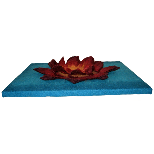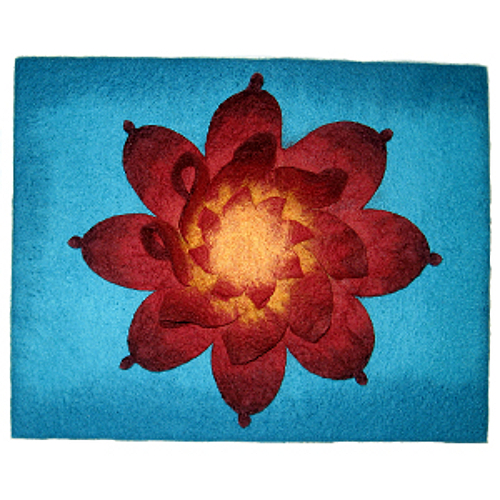 ![]() ![]() | Ein Mandala in Blumenform. Plastisch gearbeitet, erhebt sich die Blume vom Bild. Das Bild wurde auf einen Keilrahmen gezogen. Maße: Aufgezogen auf einen Keilrahmen mit der Größe 40cm x 50cmMaterial: Südamerikanische Merinowolle feinTechnik: Flächenfilz, nassgefilzt, handgefilzt, genäht |