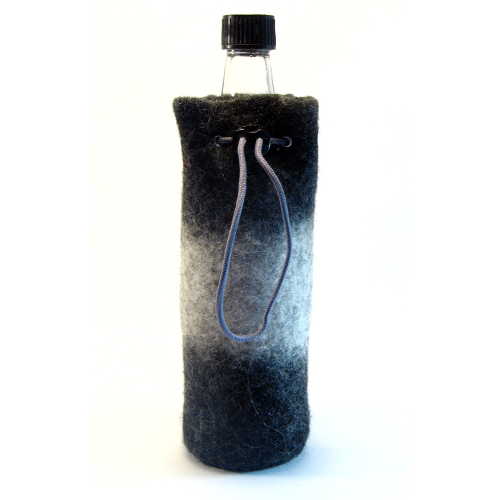 ![]() | Als Schutzhülle. Passend für alle handelsüblichen 0,5l Bier-, Saft- und Mateteeflaschen. Verschliessbar mit einer Gummikordel. Maße: Höhe: ca. 23cm, Durchmesser unten: ca. 7cm, oberer Durchmesser ca. 9cm (regulierbar durch Gummikordel)Material: Merinowolle, Gummikordel, Kordelstopper, Ösen von PrymTechnik: nassgefilzt, handgefilzt |