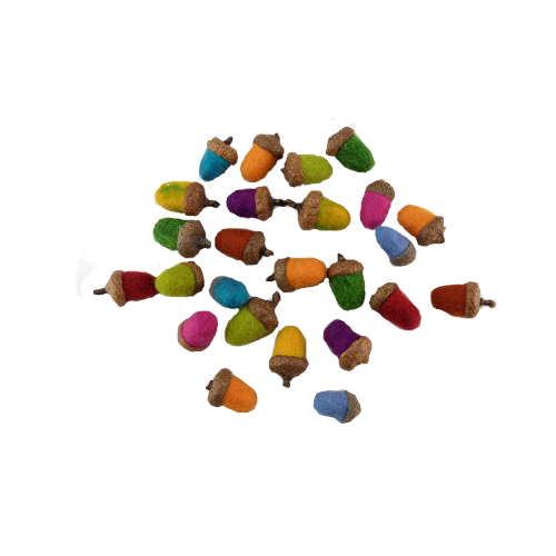 Bunt gefilzte Eicheln mit echtem Eichelhütchen