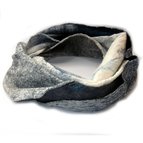 Loop-Schal in Nunofilztechnik aus extrafeiner Merinowolle und eingefilzten Seidenfasern